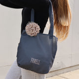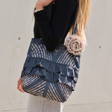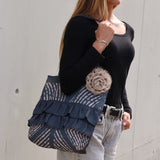 Bolso confeccionado en tela resistente con detalles de volantes en contraste. Incluye asas largas para llevar al hombro y un diseño amplio para acompañarte en tu día a día.