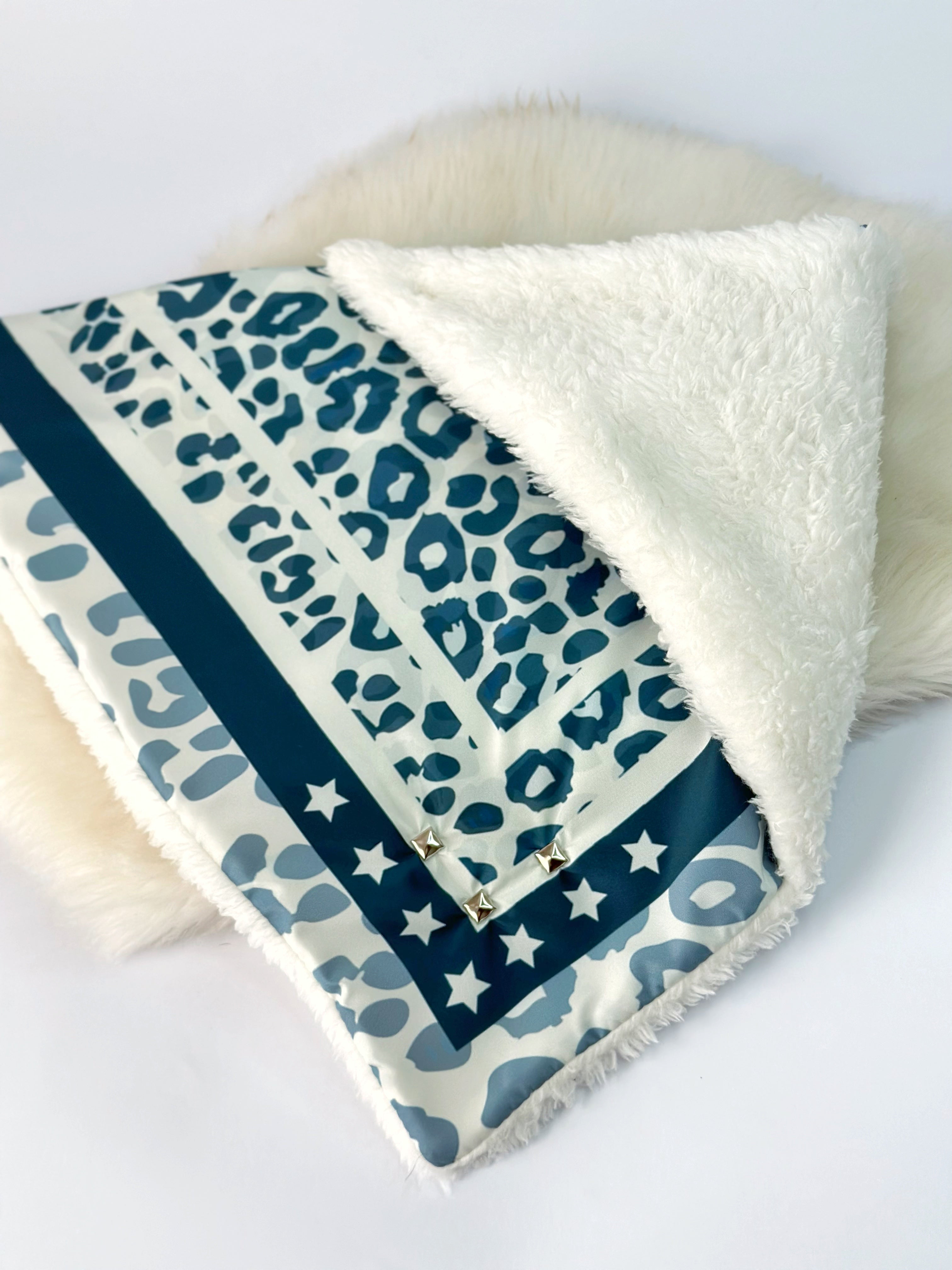 Pañuelo con chiporro con estampado propio. Incluidas tachas y aplicaciones en su borde. Se amarran por medio de un broche en donde lo puedes ajustar moviendo el botón a tu gusto!