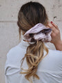 Cada Le Scrunchie está confeccionado a mano con tela de seda suave y de alta calidad, seleccionada por su textura ligera, su brillo natural y su caída delicada. Su diseño versátil permite usarlo tanto en el cabello como en la muñeca, aportando un toque de distinción a cualquier look.