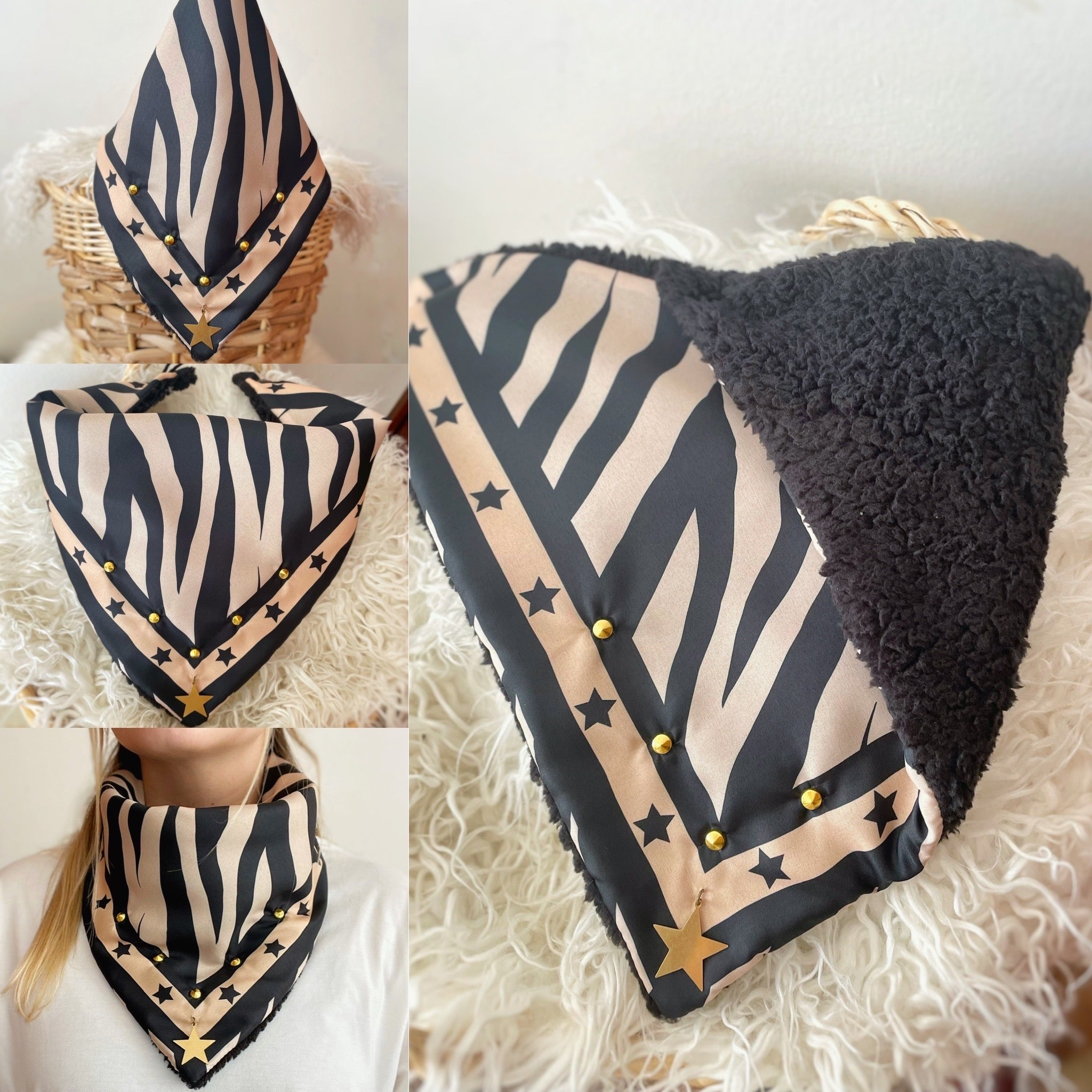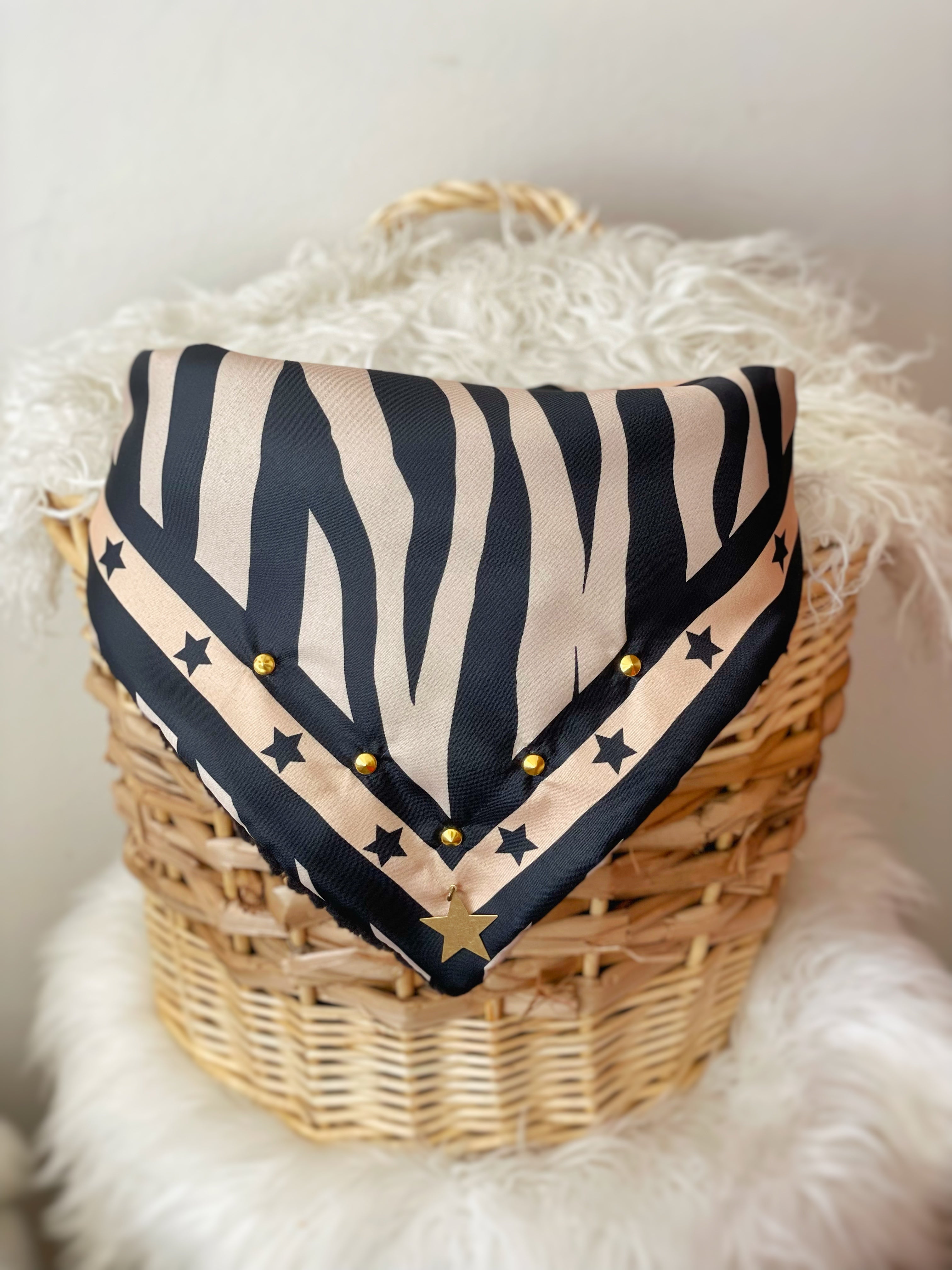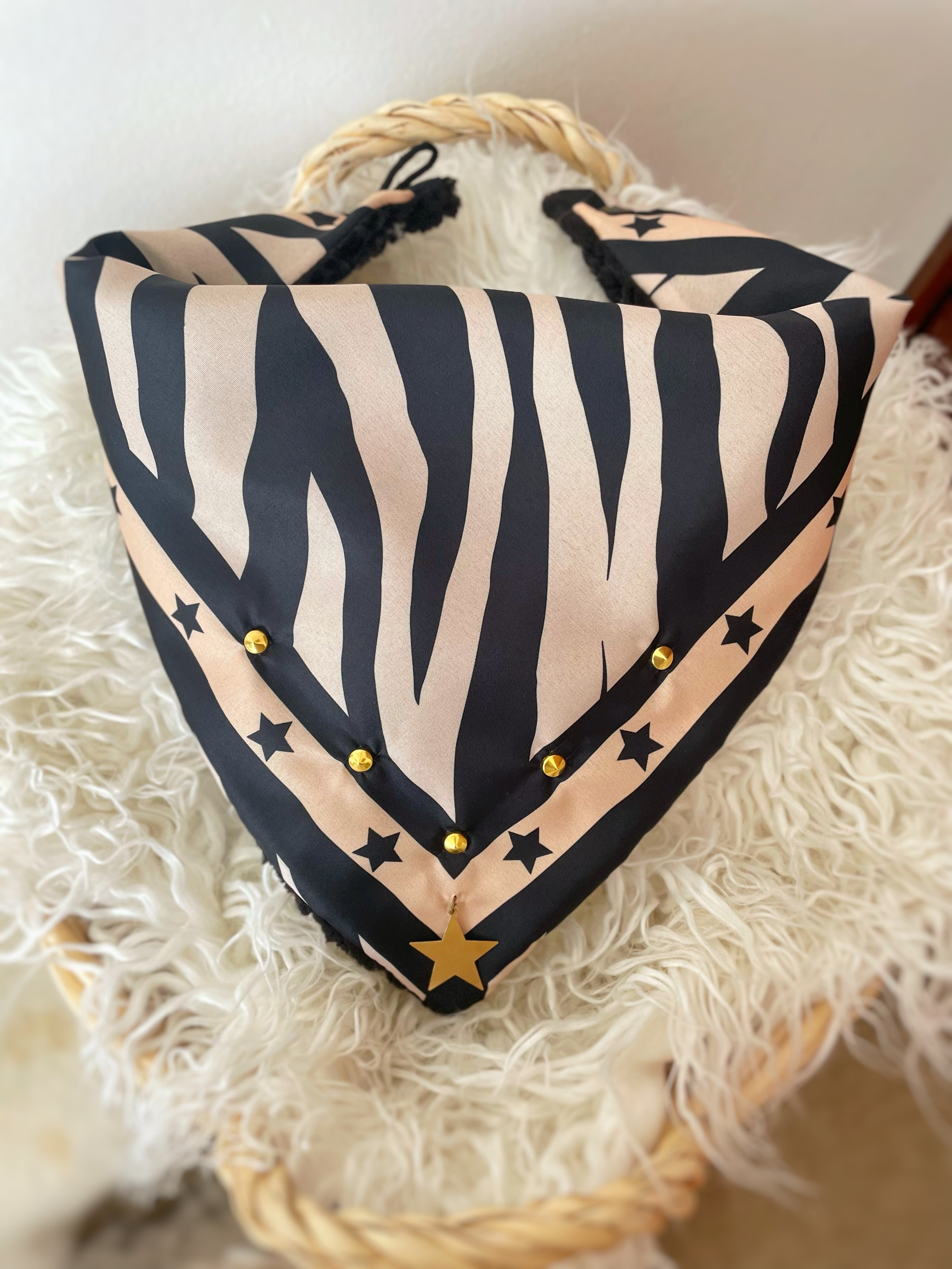 Pañuelo en diseño cebra print con tonalidades cafés y negras! ⭐🔥