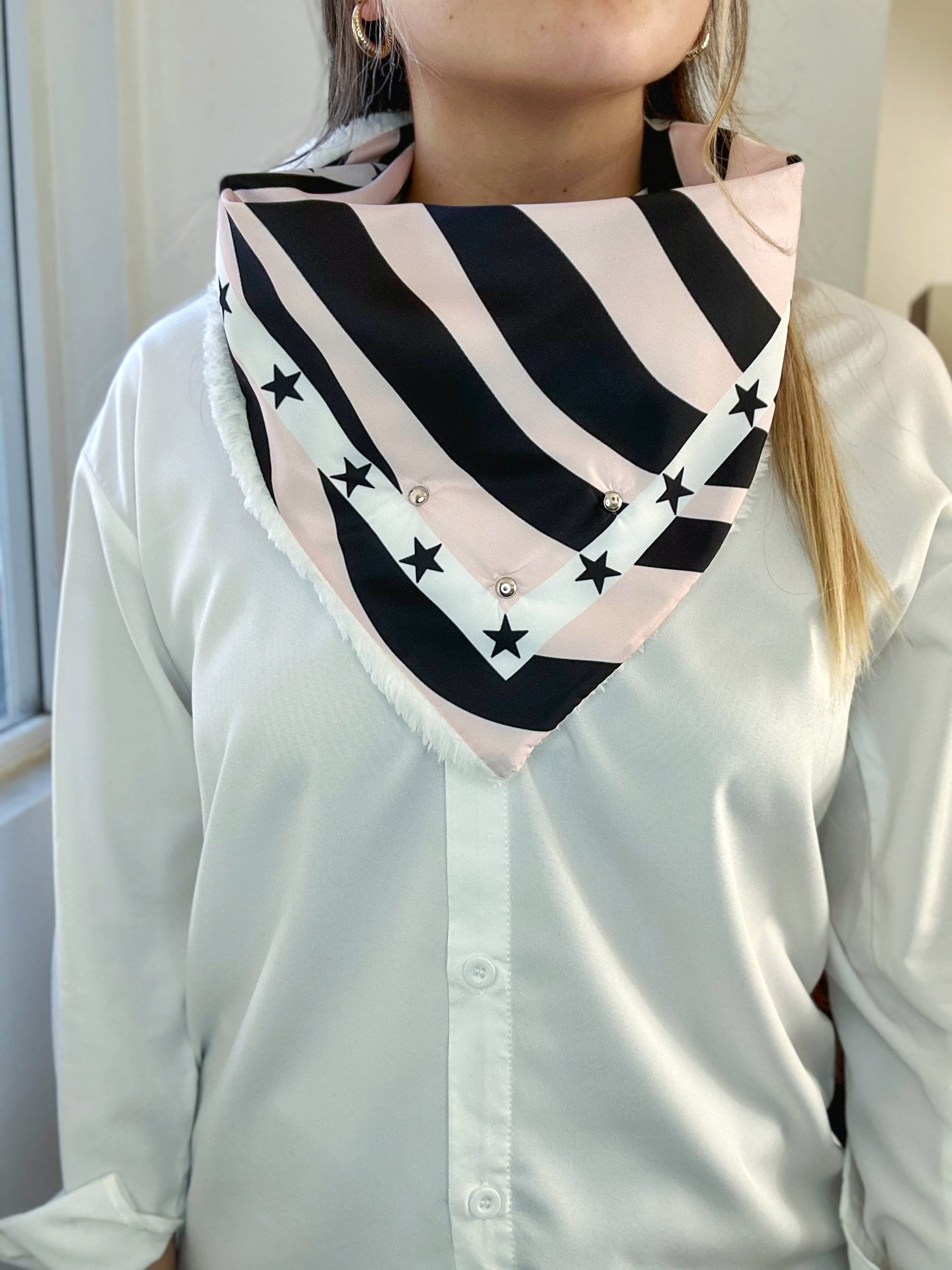 ★★★ Pañuelo con Cebra en estilo beige y estrellas en su borde ★★★