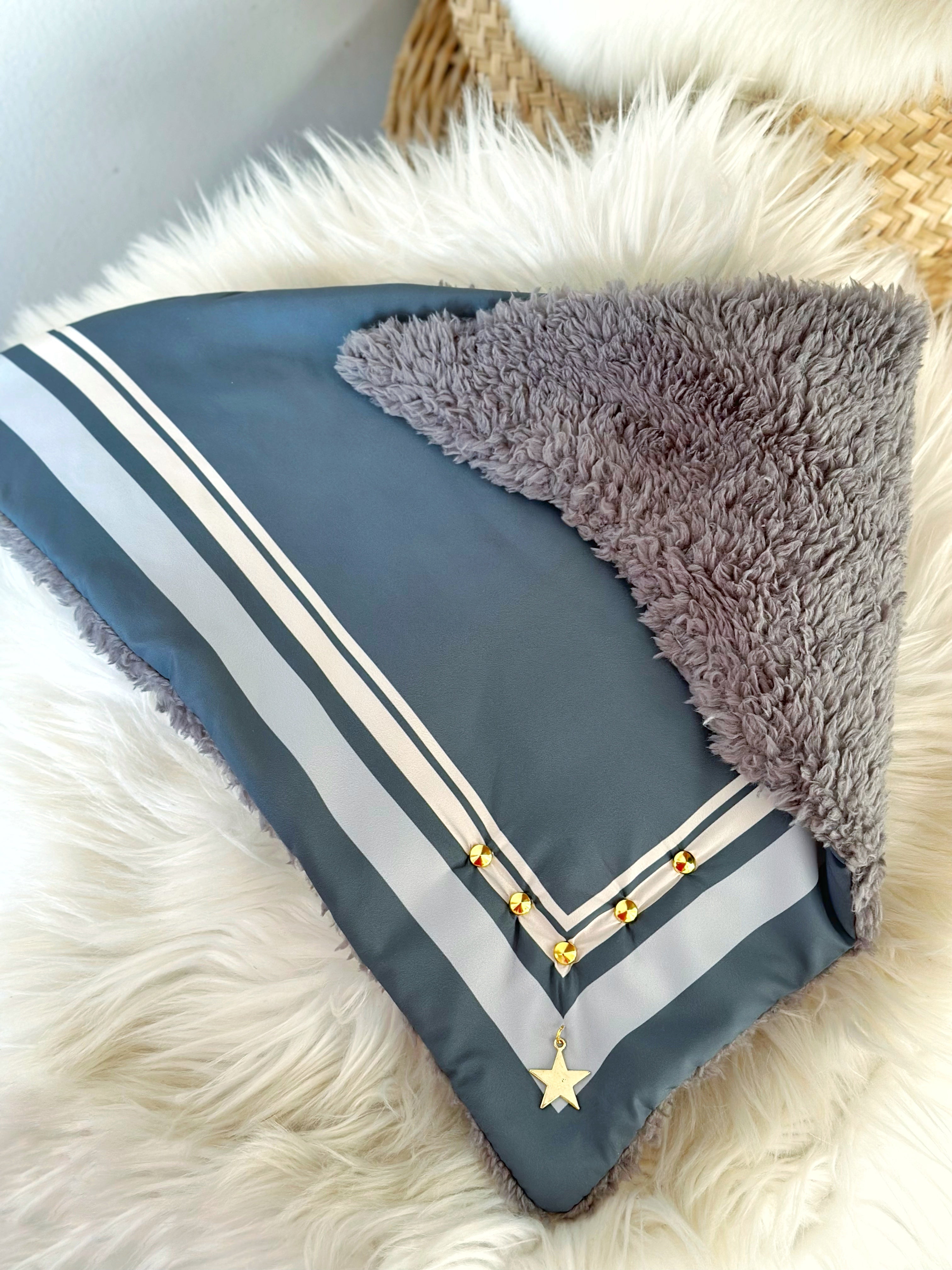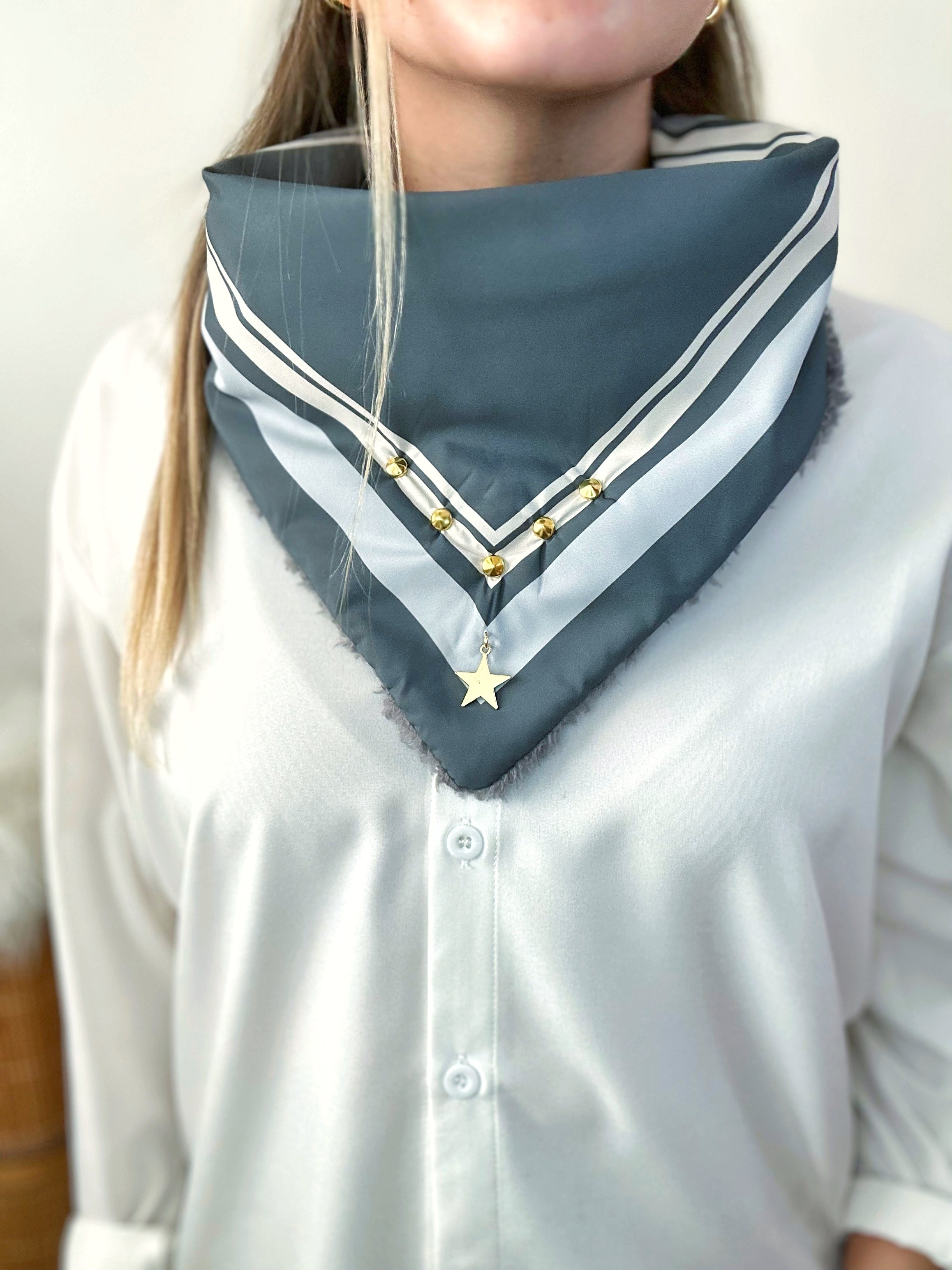 Pañuelo con chiporro con estampado propio. Incluidas tachas y aplicaciones en su borde. Se amarran por medio de un broche en donde lo puedes ajustar moviendo el botón a tu gusto!