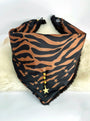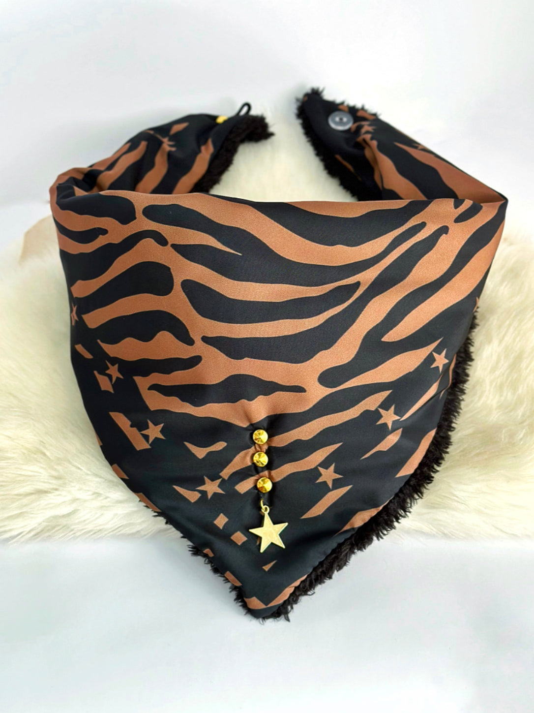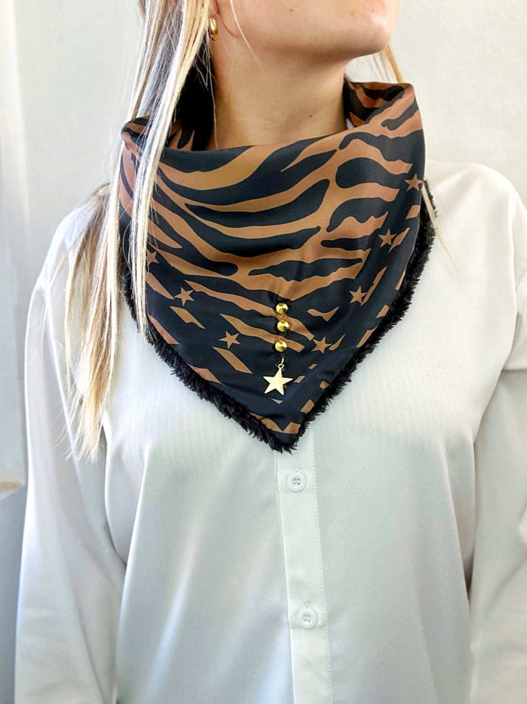 Pañuelo en chiporro con borde estrella y full print en leopardo en café y beige! 🐆🤍🤎