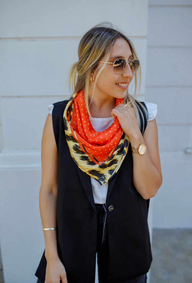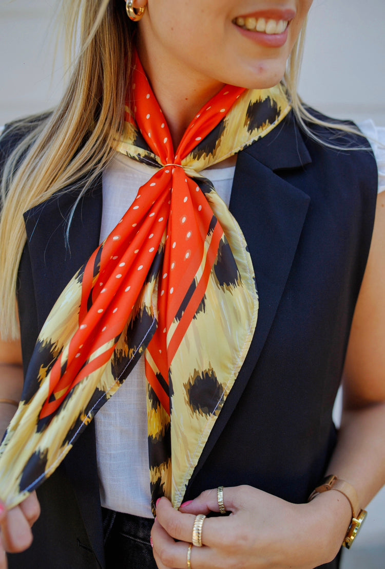 Pañuelo de seda en color naranjo italiano en su centro con el borde Print 🧡🐆