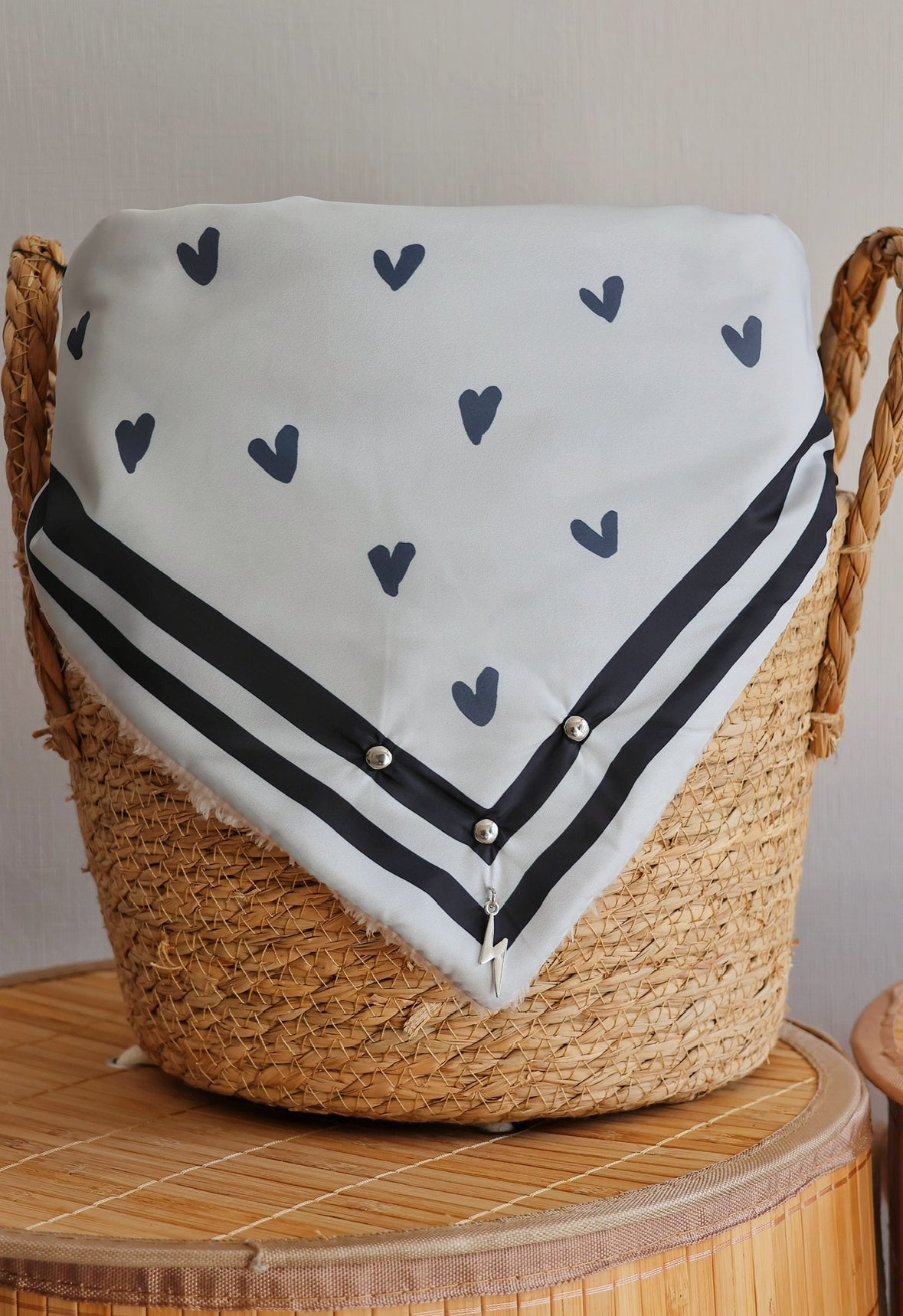Pañuelo con chiporro con estampado propio. Incluidas tachas y aplicaciones en su borde. Se amarran por medio de un broche en donde lo puedes ajustar moviendo el botón a tu gusto!
