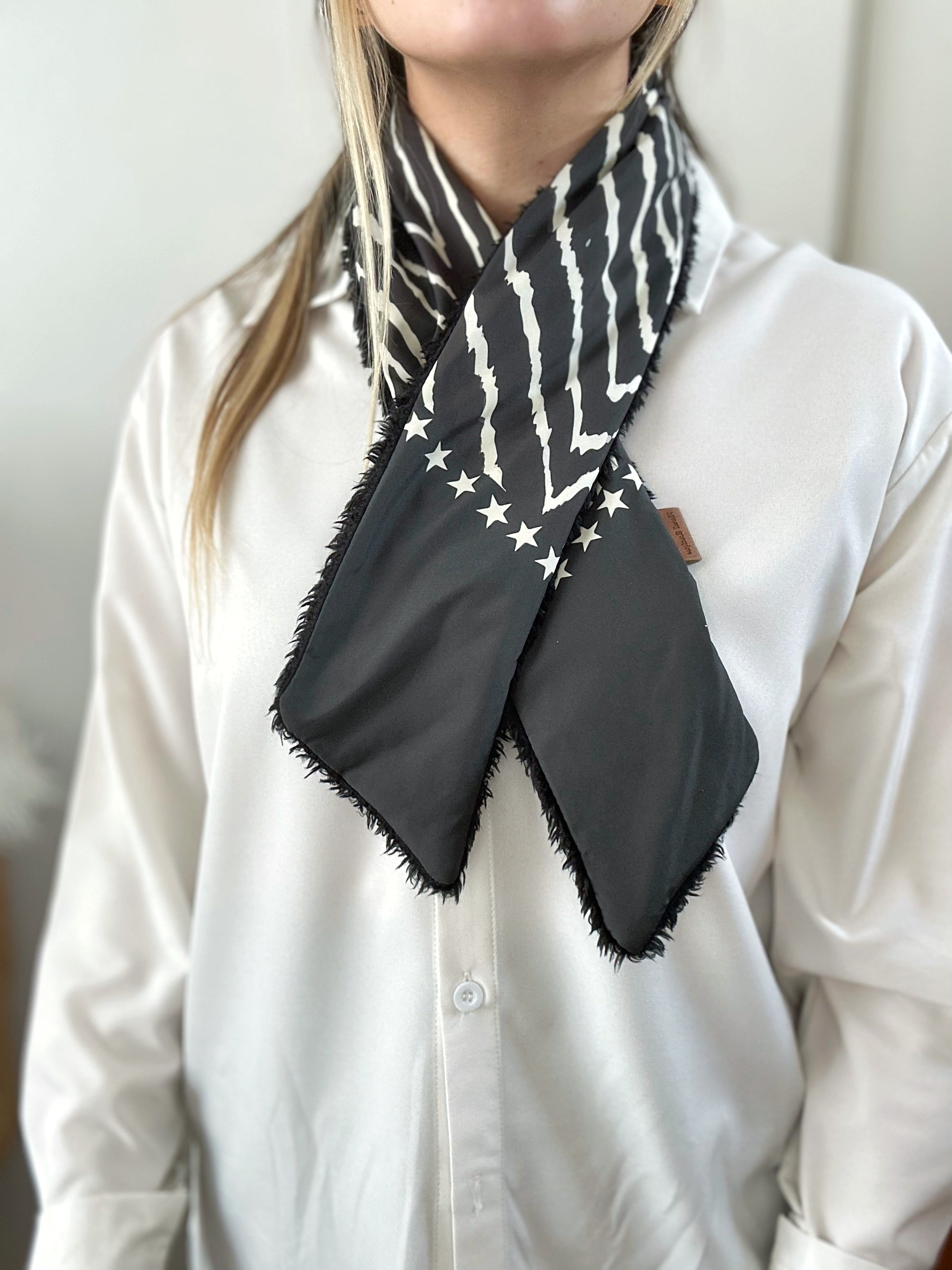 Pañuelo estilo francés con diseño único. Tienen un broche a presión para ser utilizados