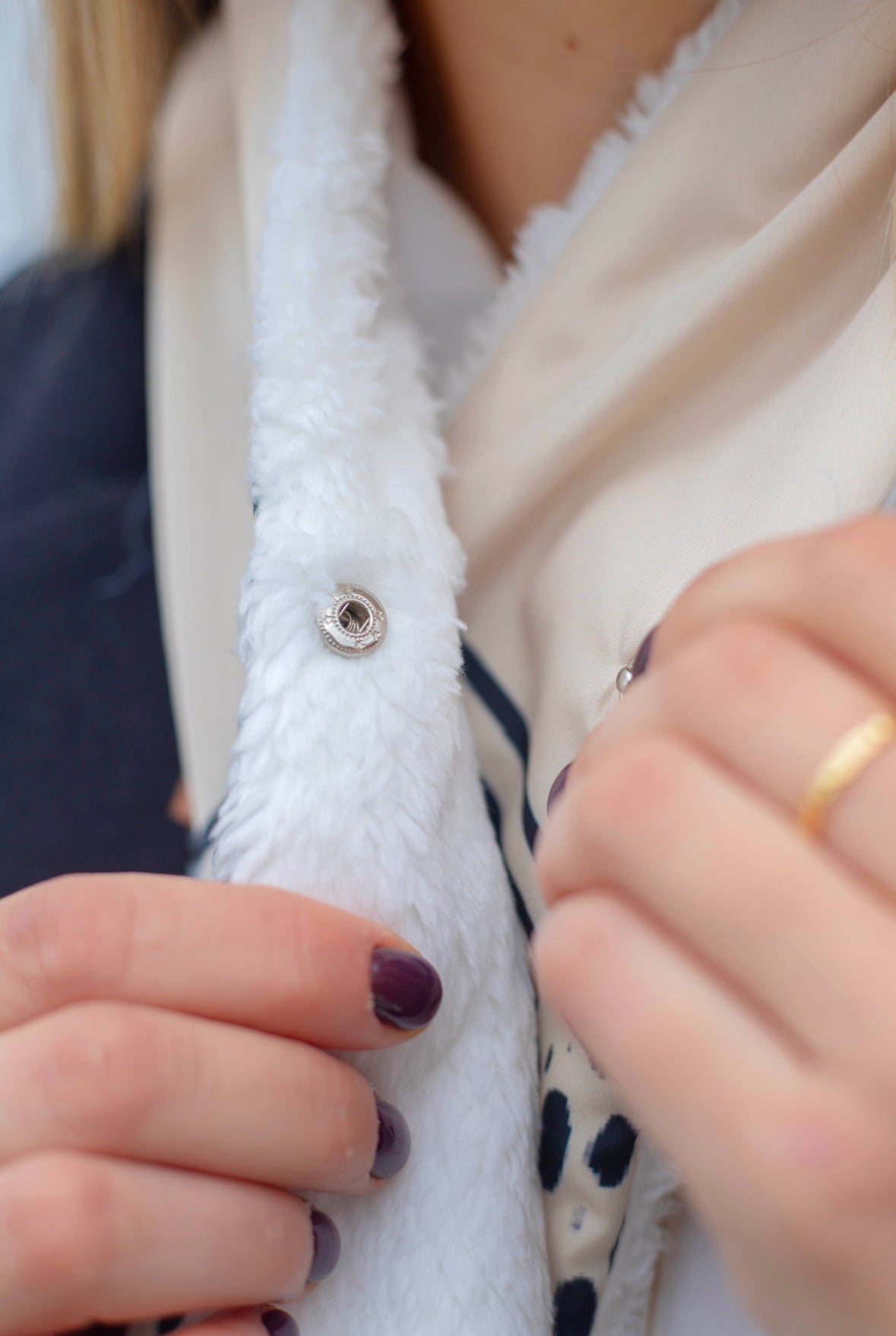 Pañuelo estilo francés con diseño único. Tienen un broche a presión para ser utilizados