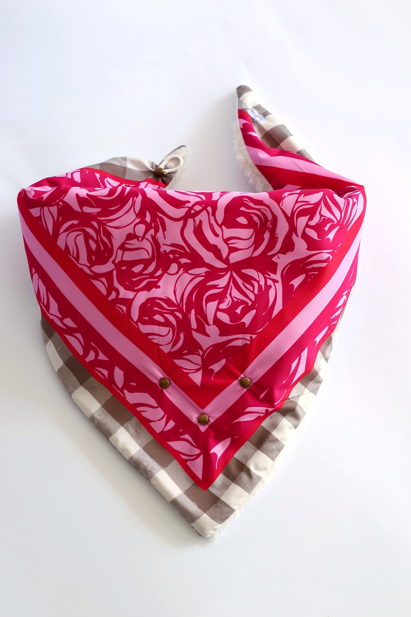Pañuelo con chiporro con estampado propio. Incluidas tachas y aplicaciones en su borde. Se amarran por medio de un broche en donde lo puedes ajustar moviendo el botón a tu gusto!