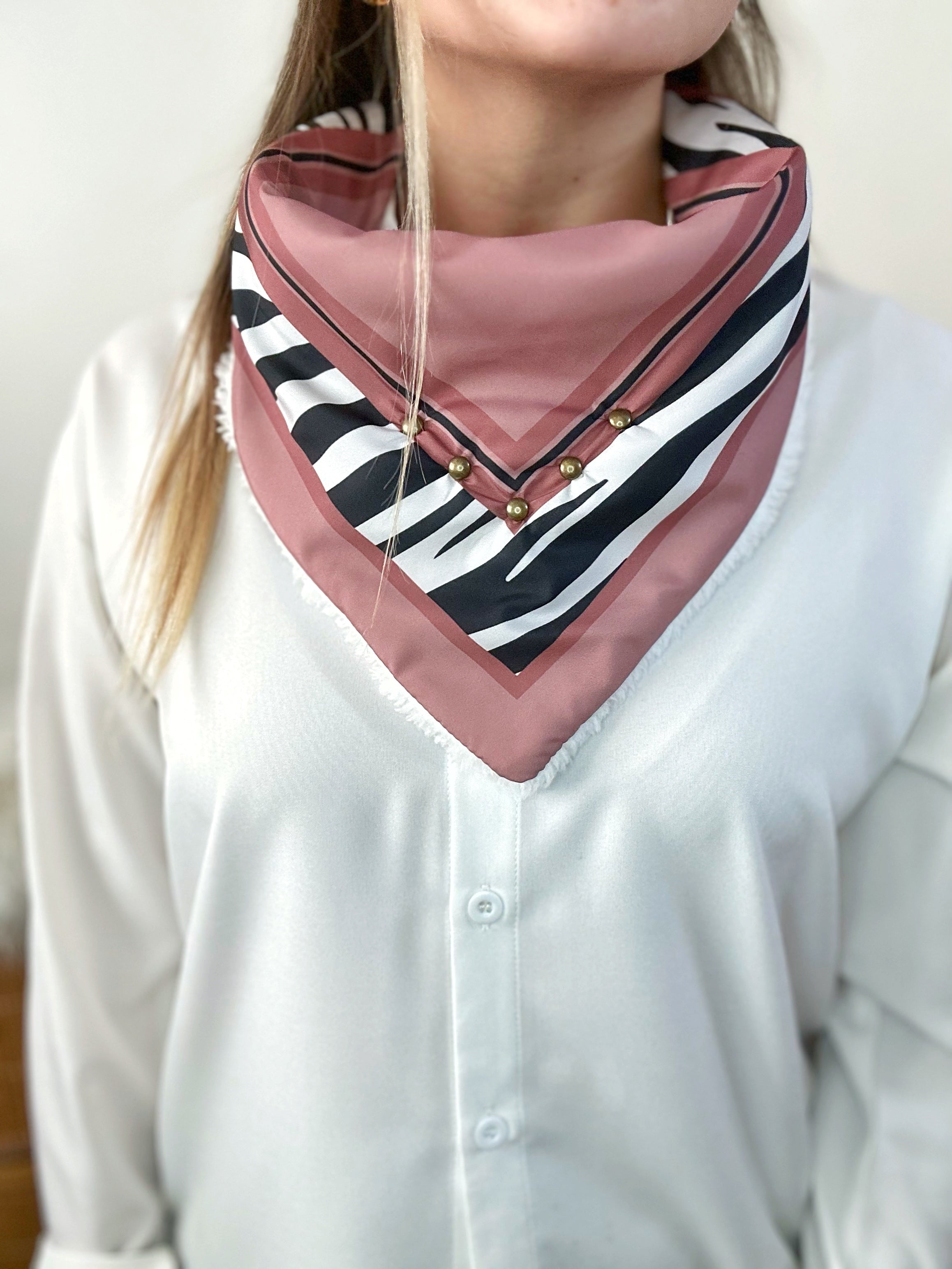Pañuelo con chiporro con estampado propio. Incluidas tachas y aplicaciones en su borde. Se amarran por medio de un broche en donde lo puedes ajustar moviendo el botón a tu gusto!